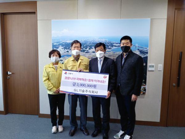 GL기술주식회사은 지난 26일 강릉시청을 방문해 강원사회복지공동모금회를 통해 코로나19 극복 이웃돕기성금 삼백만원을 강릉시에 기탁했다.