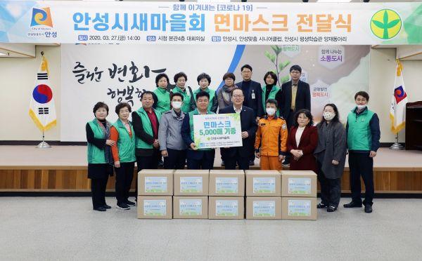 안성시새마을회를 비롯한 안성맞춤 시니어클럽, 안성시 평생학습관 양재동아리 회원들은 코로나19 사태 극복을 위해 시와 손을 맞잡고 면 마스크 5천개를 직접 제작해 안성시에 기증했다.