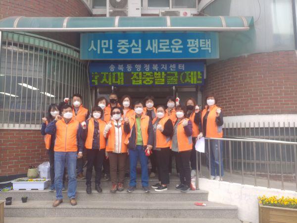 평택시 송북동 주민자치회는 지난 26일 코로나19 확산 방지를 위해 관내 거점 수거지와 다중이용시설을 대상으로 방역활동 및 사회적 거리두기 캠페인 실시했다.