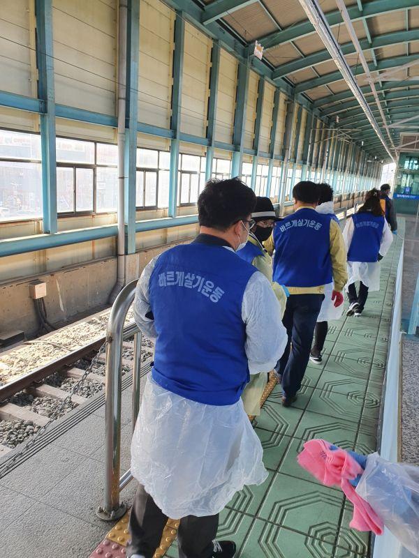바르게살기운동 안산시협의회는 코로나바이러스감염증-19 감염 예방을 위해 회원 70여명과 함께 전철 4호선 상록수역 내부 및 주변 일대 방역소독과 함께 봄맞이 국토대청결운동을 실시했다고 30일 밝혔다.