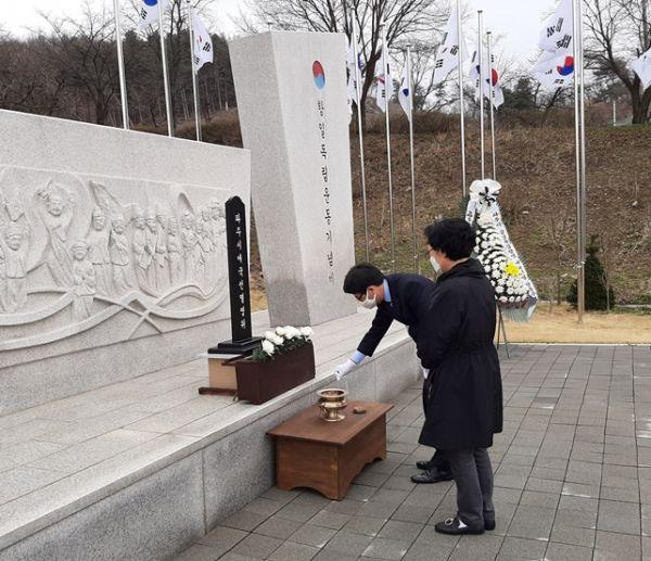 최종환 파주시장은 지난 27일 광탄독립공원에서 신옥자 광복회장, 독립유공자 유족 등과 함께 애국선열에 대해 추모했다.