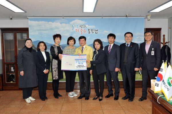 사)동두천시 자원봉사센터는 지난 27일 오후 시청 시장실에서 한땀드림봉사회, 여성단체협의회, 지역사회보장협의체 위원 등 9명이 참석한 가운데, 코로나19 예방을 위한 수제 면마스크 4,800장의 전달식을 가졌다.