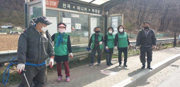 동두천시 소요동 새마을남녀지도자협의회는 지난 28일 코로나19의 유입 방지 및 종식을 위해 사람들이 많이 이용하는 버스정류장 등 관내 다중이용시설에 대한 방역을 실시했다.