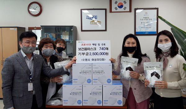수원시여성리더회는 지역사회 취약계층을 위해 사용해달라며 수원시에 보건용 마스크 740매와 성금 250만원을 전달했다.