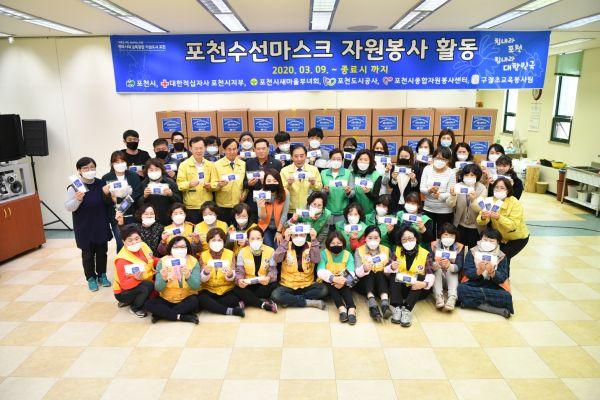 지난 3월 3일부터 불량마스크 물량 확보, 자외선 소독기, 포장지, 포장박스를 준비하고 9일부터 27일까지 15일간 자원봉사자 및 공무원 등 567명을 투입해 수선마스크 10만매를 수선했으며 앞으로 30만매를 목표로 ‘포천시 수선마스크’작업을 진행 할 계획이라고 전했다.