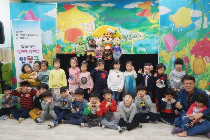이번 장애인식개선 인형극은 콜롬버스 인형극단의 공연으로 통합어린이집 비장애 아동들이 나와 다른 친구에 대해 이해함으로써 긍정적 상호작용을 도모하고자 마련했다.