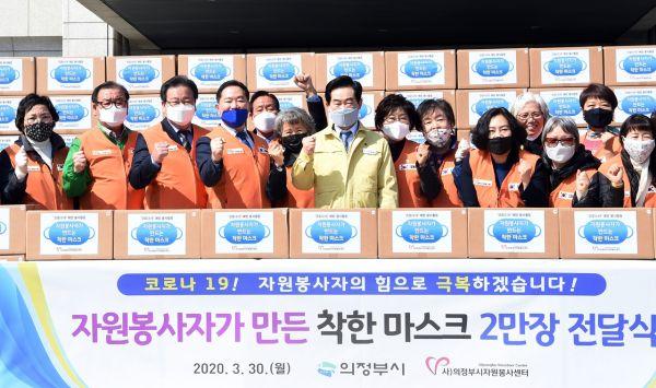 의정부시자원봉사센터는 30일 자원봉사자들이 직접 제작한 필터교체형 수제 면 마스크 2만개를 의정부시에 기탁했다.