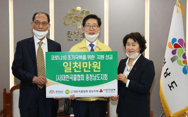 대한곡물협회 충남지회가 코로나19로 어려움을 겪고 있는 도민을 위한 성금을 기부했다.