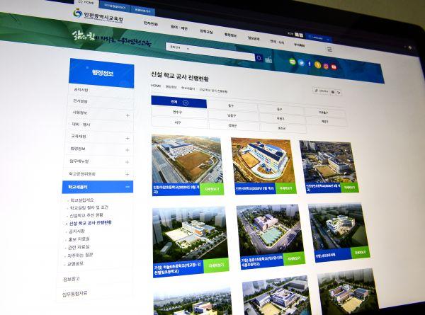 인천시교육청에서는 현재 공사 중인 신설학교의 사진과 공정률이 포함된 진행 상황을 한눈에 확인 할 수 있도록 홈페이지를 통해 안내하고 있다고 밝혔다.