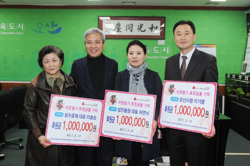 한편 곽상욱 오산시장은 “어려운 이웃돕기를 위한 성금기탁에 감사와 격려를 하였으며, 앞으로도 지역 내 나눔 문화가 확산되기를 바라며, 오산시도 지역사회 복지공동체 형성에 앞장서겠다”고 밝혔다.