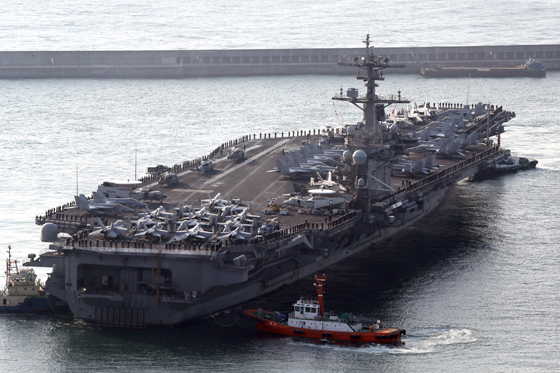 칼빈슨함은 부산작전기지 입항을 앞두고 한반도 주변 해역에서 훈련을 한 것으로 알려졌다.