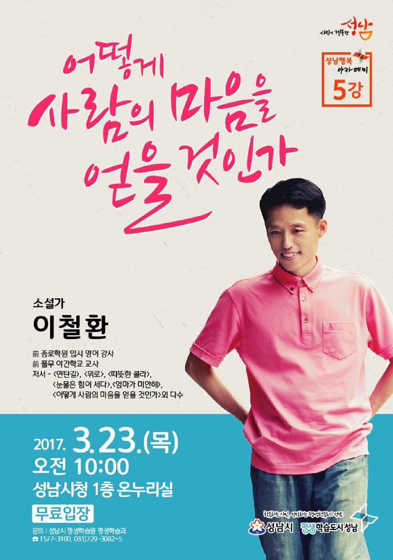성남시는 이철환 작가를 초청해 오는 3월 23일 오전 10시 시청 온누리에서 성남행복아카데미를 연다.