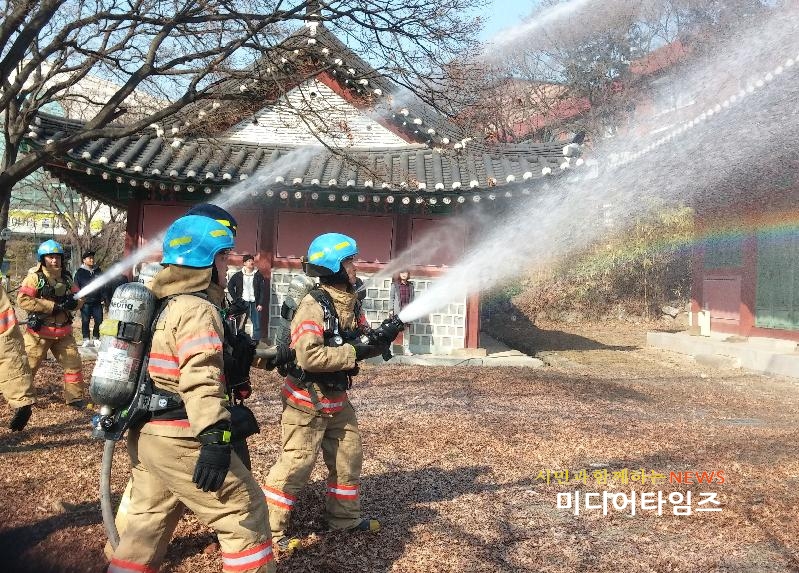 | 중요문화재 소방훈련 모습. <ⓒ미디어타임즈> |