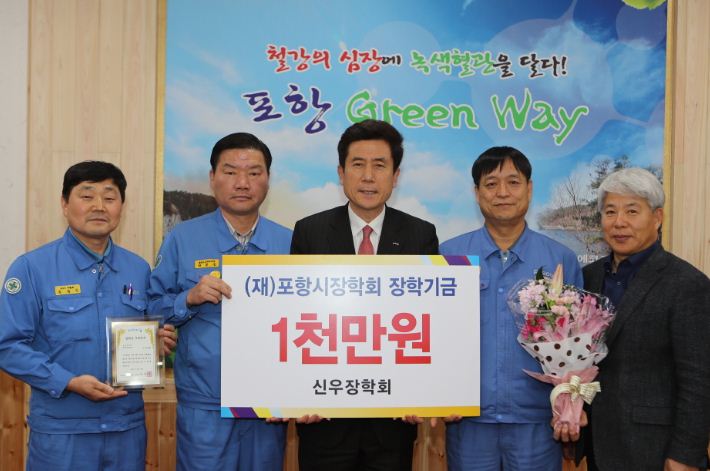 신우장학회(회장 채상준)에서 포항시 인재육성 장학기금 1천만원을 기탁했다. 지난 78년 3월 결성된 신우장학회는 ㈜포스코 EIC기술부의 뜻있는 사원들로 구성 된 봉사단체로 당시 2만 3천원의 기금으로 장학금 지원을 시작하여, 움직이는 찻집,구내 매점, 일일호프 등 다양한 방법으로 장학기금을 조성해 왔다.