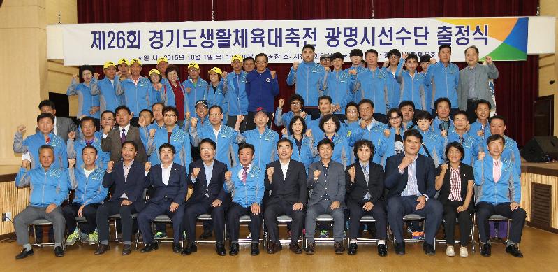 광명시의회(의장 나상성) 의원들이 1일 시청 대회의실에서 열린 제26회 경기도 생활체육대축전 선수단 출정식에 참석해 광명시 선수단을 격려했다.