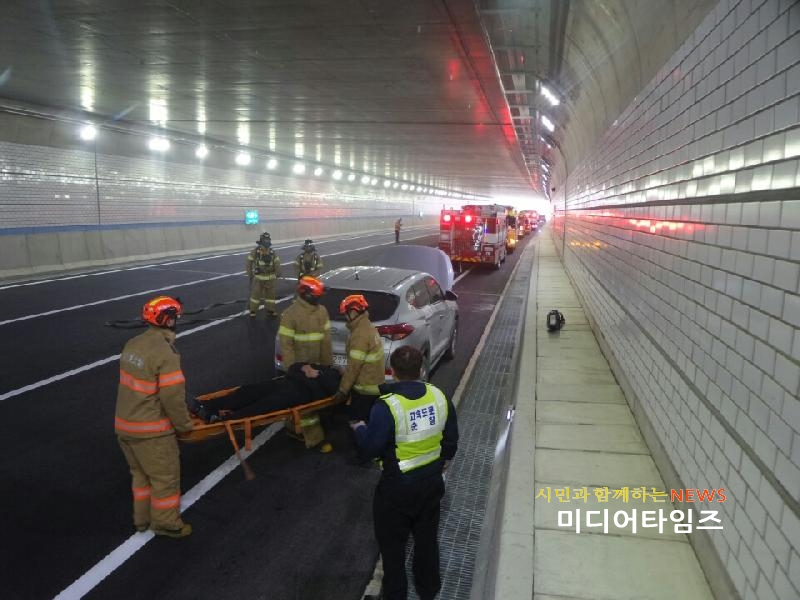 [미디어타임즈=홍기연 기자] 인천서부소방서(서장 김준태)는 20일(월) 인천~김포 간 고속도로 김포방향 10.5km지점에서 합동소방훈련을 실시했다.이번 훈련은 소방 및 유관기관 등 38여명, 소방차 등 14대가 동원돼, 인천 ~ 김포 간 신설된 고속도로 개통에 대비, 화재발생 시 신속대응으로 국민의 생명과 재산보호, 피해 최소화 및 유관기관과 긴밀한 협조체제 구축, 사고유형별 비상시 대처능력 배양 및 기술향상을 배양하기 위해 실시했다.이번 훈련은 SUV 차량이 터널에서 주행 중 화재가 발생한 사고를 가정해, 화재진압 활동, 인명구조 및 응급처치, 유관기관과 협조공조 등의 순서로 진행됐다.소방서 관계자는 "인천~김포 간 고속도로 개통으로 인천항과 배후 물류단지 및 인근 산업단지를 오고 가는 대형차량 등이 증가하면서 교통사고 위험도 늘어날 것으로 예상되는 만큼, 훈련을 통해 안전에 최선을 다하겠다"고 밝혔다.