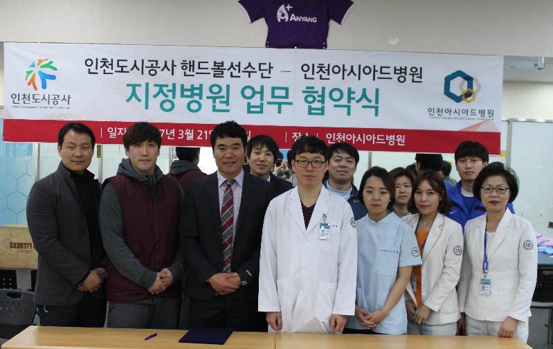 [미디어타임즈= 신정식 기자] 인천도시공사 핸드볼 선수단과 인천아시아드병원재활의학팀이 2017년 3월 21일 공식재활협력 자매결연을 추진했다.