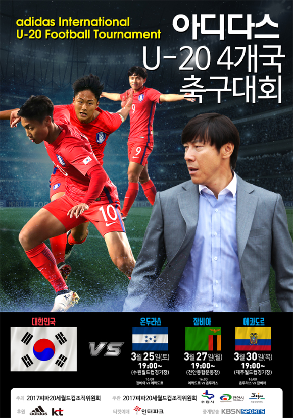 [미디어타임즈= 신정식 기자] 대한민국, 온두라스, 잠비아, 에콰도르 U-20 대표팀이 참가하는 ‘아디다스컵 U-20 4개국 국제축구대회’가 오는 25일부터 30일까지 한국에서 개최된다.