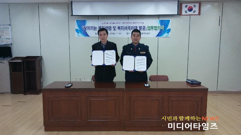 [미디어타임즈=문상수 기자] 인천 남구 도화1동 행정복지센터는 지난 22일 주안역지구대와 ‘복지사각지대 발굴 지원체계 구축’을 위한 업무협약을 체결했다.업무협약을 체결한 양 기관은 찾아가는 복지상담을 활성화하고 맞춤형 복지담당자의 안전 확보와 주민복지 향상을 위해 노력하게 된다.또 사회복지담당자가 출소자, 정신질환자, 알콜중독자 등 고위험군 가정 방문시 경찰이 동행하고 위기상황 발생시에도 지원한다는 내용도 담고 있다.이밖에 경찰관들이 업무 수행중 취약계층을 발견하거나 제보하면 행정복지센터에서 상담을 진행, 맞춤형 복지서비스를 제공하는 등 상호 협조하기로 했다.황갑재 도화1동장은 “지역의 복지 및 안전을 담당하고 있는 양 기관이 긴밀히 연계, 협력해 복지사각지대 대상자를 발굴하고 튼튼한 사회안전망을 구축하는데 앞장서자”고 말했다.