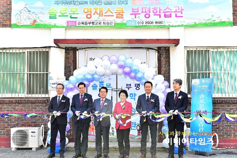 [미디어타임즈=문상수 기자] 홍미영 부평구청장은 지난 22일 갈산동 순복음 부평교회에서 열린 ‘솔로몬 영재스쿨 부평학습관’ 개관식에 참석했다.순복음 부평교회는 가정 형편이 넉넉지 않은 초등학생을 포함한 총 40여명 아동의 무료교육을 위해 교회 별관에 ‘학습관’을 개원했다.순복음 부평교회 장희열 목사는 “아동 한 사람 한 사람을 소중히 여기며 미래지향적인 교육을 위해 오랜 시간 준비 끝에 학습관을 개원하게 됐다”며 “소중한 아이들에게 바른 공부습관과 인성을 심어주고 사회성과 창의성을 배양시켜 주는 교육이 되도록 지원하겠다”고 밝혔다.홍미영 구청장은 “관내 지역단체에서 앞장서 어려운 가정 아이들에게 꿈과 비전을 제시 해주는 등 무상교육을 제공에 줘 너무 감사하다”며 “학습관개원이 앞으로 어려운 가정아이들에게 희망이 될 것으로 믿는다”고 말했다.지난 3월 초 개원한 솔로몬 영재스쿨 부평학습관은 초등학생 방과후 교육을 운영하고 있으며 향후 점진적으로 교육 분야를 확대해 나갈 계획이다.