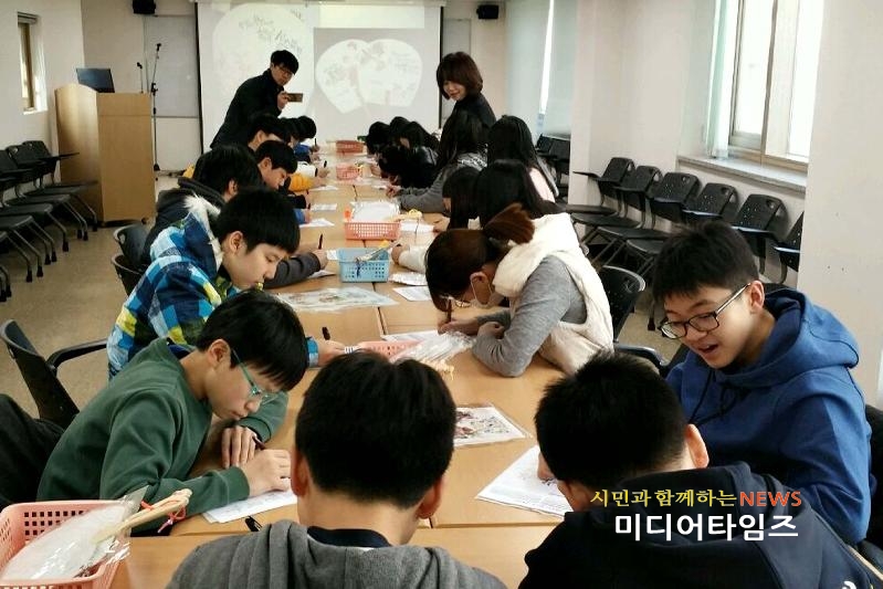 | 어린이캘리그라피 교실 모습. <ⓒ미디어타임즈> |