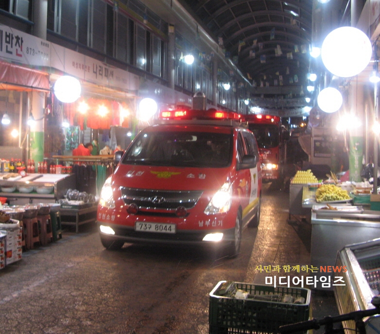 | 전통시장 대형화재 방지대책 훈련 모습. <ⓒ미디어타임즈> |