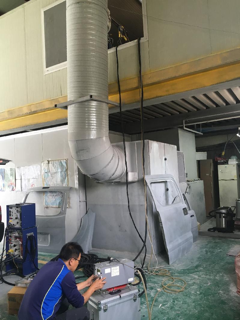 | 채취 포집기로 대기오염물질 배출사업장 굴뚝 먼지와 총탄화수소 채취 사진. |