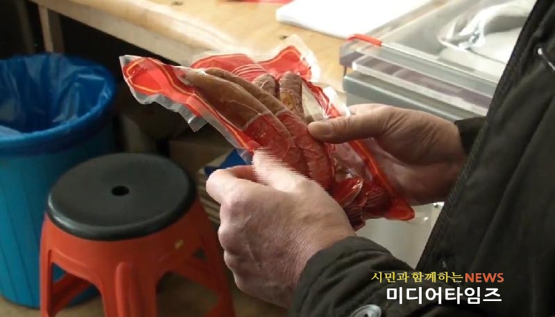 | 중국산 돼지 내장을 밀수입해 국내에 불법 유통한 소시지 사진. <사진=미디어타임즈> |