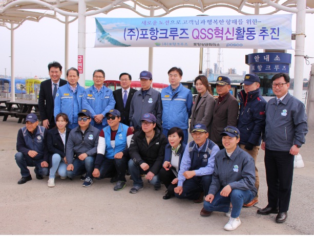 포항크루즈는 23일 오전 9시30분경 포항운하관 3층 카페테리아에서 전 임직원과 포스코 관계자 및 포항상공회의소 관계자가 참석한 가운데 “새로운 도전으로 고객님과 행복한 항해”를 위한 슬로건으로 포항크루즈 QSS 다짐대회를 가졌다. 포항크루즈는 POSCO의 전문컨설턴트와 포항상공회의소의 협조하에 QSS 혁신교육과 이에 따른 낭비요소 발굴과 재도 개선등을 통한 한층 업그레이드 된 회사로 거듭날 것을 다짐하였다. 포항크루즈는 2017년부터 지속적인 QSS 혁신활동을 통하여 새로운 도약의 해로 진입하고 2014년 3월1일 정식운항후 3년동안 54만명의 탑승객을 단 한건의 안전사고 없이 운항을 하였고 또한, 작년 12월부터는 포항운하관 3층과 4층에 관광객 편의를 위한 카페테리아 및 편의점을 운영중에 있으며 이러한 운영 경험을 바탕으로 안전과 고객서비스를 강화하고 새로운 고객을 창출하여 동해안 최고의 관광명소로 해양관광산업의 주도적인 역할을 수행할 것을 전 임직원이 결의문 낭독을 통하여 다짐하였다.