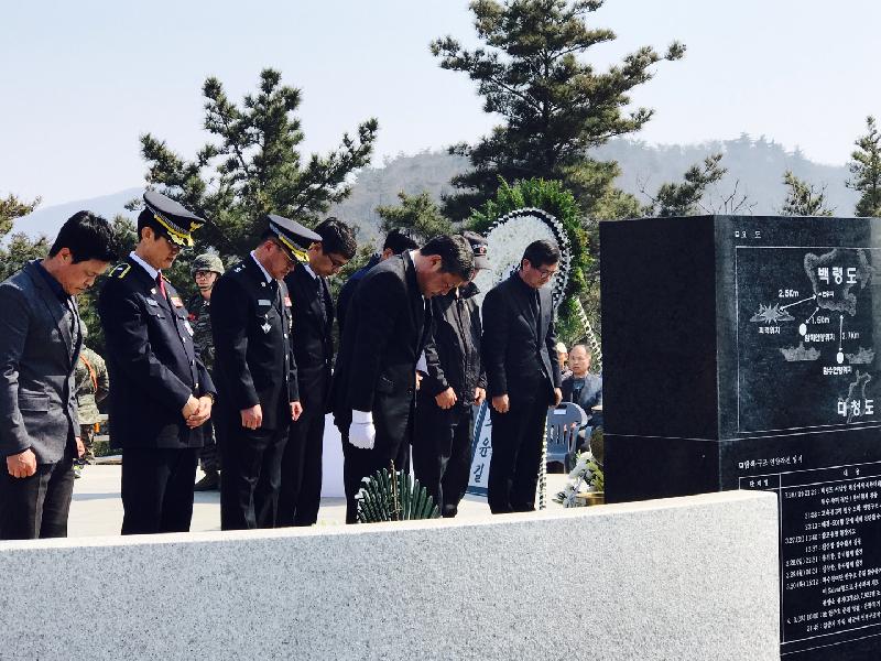 천안함 폭침 7주기를 맞아 백령면(면장 이철)은 옹진군 백령면 연화리에 위치한 천안함 위령탑에서 이철 백령면장, 정수용 해병6여단장, 천안함 유가족, 천안함 장병 및 천안함 재단, 해군본부, 지역주민 등 120여 명이 참석한 가운데 서해 수호를 위해 산화한 46용사의 희생정신을 기리는 추모식이 열렸다. 추모식은 46용사에 대한 헌화 분향, 전사자에 대한 묵념, 유족회장의 인사말씀 순으로 진행되었다. 백령면장(이철) “천안함 용사들의 명예와 조국을 위했던 희생을 절대 잊지 않을 것”이라며, “조국의 안보와 국민의 안위를 지키기 위했던 장병들의 애국심과 충정어린 마을을 여기 서해에서 영원히 이어나갈 것”이라고 말했다.