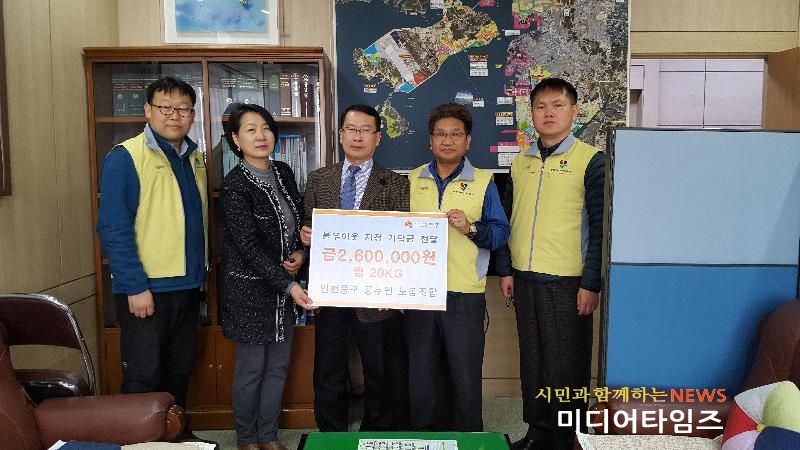 | 인천 중구 공무원 노동조합 불우이웃돕기 성금 기탁 사진. <ⓒ미디어타임즈> |