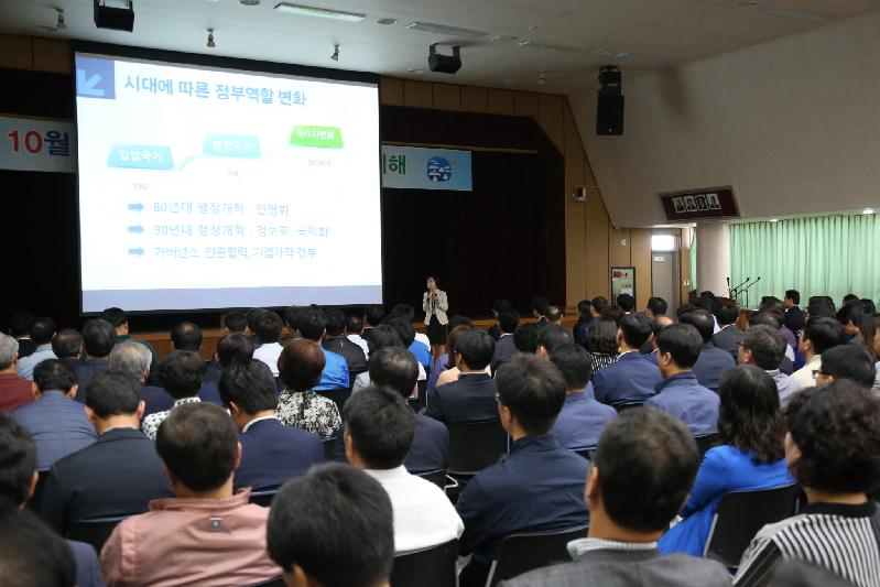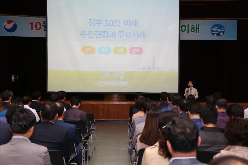 이날 특강에는 시장을 비롯하여 관계공무원 300여 명이 참석한 가운데 미래교육문화진흥원 미래교육연구센터 이자성 센터장의 강의로 “정부 역할의 변화”, “정부3.0은 무엇인가?”, “무엇을 할 것인가?”, “정부3.0 우수사례” 등에 대해 1시간여 동안 진행됐다.