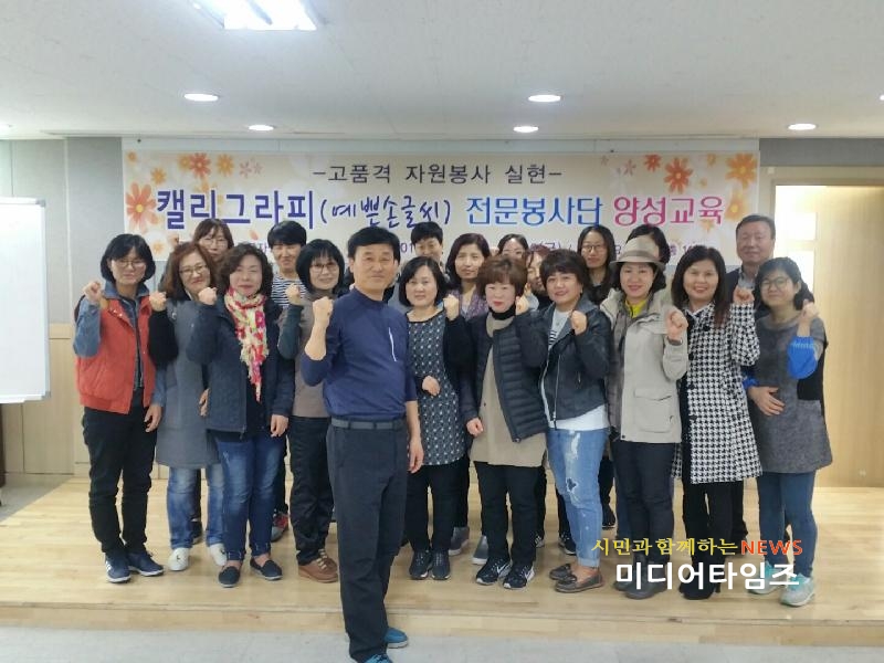 | 캘리그라피 전문봉사단 양성교육 사진. <ⓒ미디어타임즈> |