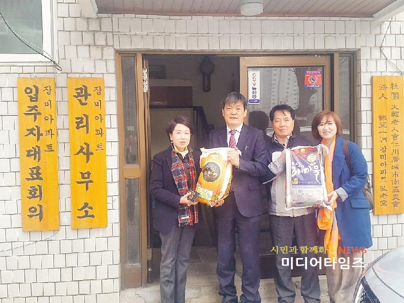 [미디어타임즈=문상수 기자] 인천 남구 학익1동 주민자치위원회는 지난 27일 학익1동 분회 등 경로당 12곳에 사랑의 쌀 1포(20kg)씩을 전달했다.경로당을 직접 방문해 진행된 사랑의 쌀 전달식에는 박영출 학익1동장과 주민자치위원 등이 참여했다.방문에 나선 박 동장 등은 경로당 운영에 대한 고충과 어르신들의 환절기 건강 등을 살피는 간담회도 가졌다.윤세중 학익1동 분회 경로당 회장은 “경제 사정이 어려운 시기에 동네 어르신까지 생각하고 후원하는 것은 쉽지 않은데 이렇게 쌀을 선뜻 지원해 주셔서 감사하다”고 말했다.송경숙 학익1동 주민자치위원장은 “앞으로도 지역 내 경로당을 지속적으로 방문해 후원하겠다”며 “소외된 어르신들에게 나눔을 실천하기 위해 더욱 노력하겠다”고 말했다.