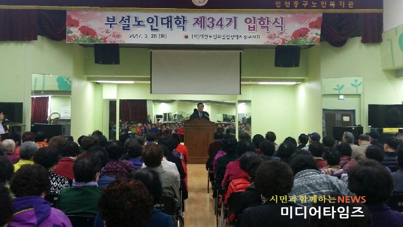 | 대한노인회인천중구지회 제34기 노인대학 입학식 개최 사진. <ⓒ미디어타임즈> |