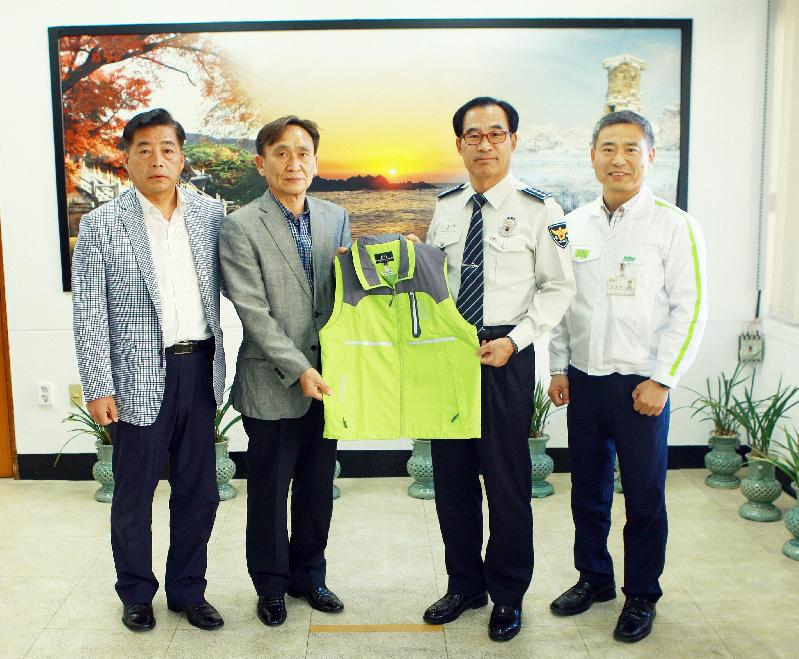 ○ 10.2.(금) 15:00 경주경찰서 서장실에서 보행자 교통사고 예방을 위해 제작한 형광조끼 전달식을 가졌다.