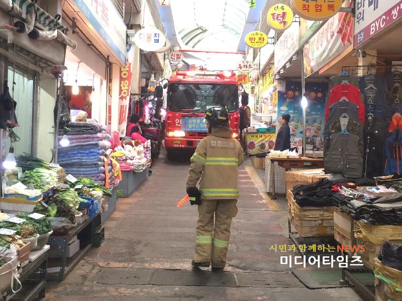 [미디어타임즈=문상수 기자] 인천남부소방서(서장 김성기)는 3일 석바위시장을 대상으로 출동시간 단축 및 화재진압 등 체계적이고 효율적인 현장대응 능력을 향상시키기 위해 ‘소방출동로 확보’ 훈련을 실시했다.이번 훈련은 소방차량 5대, 소방공무원 및 의용소방대원 30여명이 동원된 가운데 통로가 협소한 전통시장에 대하여 소방차가 출동할 수 있는 최소한의 통로를 확보하고 상인들과 시민들의 협조체계를 구축하기 위한 것으로, 상인들의 상품 진열 등으로 인한 통로장애 발생을 원천적으로 예방하고 화재에 대한 경각심을 고취시키는 것에 초점을 맞췄다. 소방서 관계자는 "안전 사각지대가 될 수 있는 전통시장에 대한 지속적인 소방통로 확보 훈련으로 신속하고 효율적인 화재진압과 상인들의 화재예방의식 제고에 만전을 기할 방침이며, 상인들도 화재 등 각종 사고 상황에 신속한 현장대응이 이뤄 질 수 있도록 소방통로 확보에 적극 협조해 줄 것”을 당부했다.