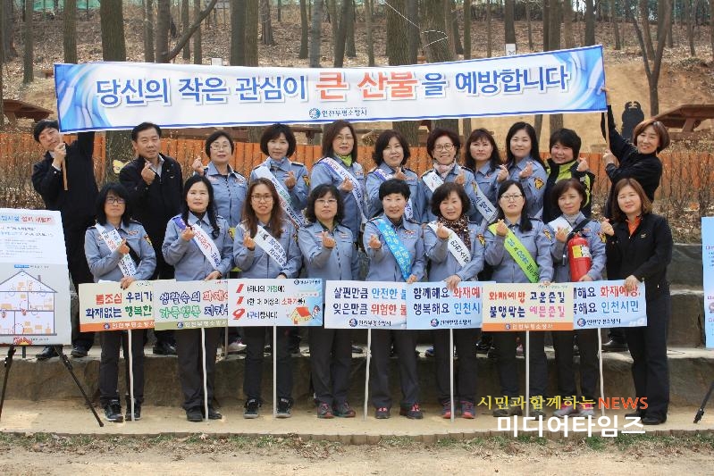 [미디어타임즈=문상수 기자] 부평소방서(서장 노경환)는 지난4일 부평구 원적산 일원에서 갈산여성의용소방대와 함께 봄철 산불예방 캠페인에 나섰다. 이날 캠페인은 봄철 입산객 증가로 건조한 날씨와 부주의에 의한 화재발생 위험이 높아짐에 따라 등산로 입구에서 산불화재 예방 캠페인과 시민 안전에 필요한 주택용 소방시설 소개, 심폐소생술 교육 등을 실시하여 시민들에게 큰 호응을 얻었다. 소방서 관계자는 “산불 화재를 예방하기 위해서는 시민들의 경각심과 동참이 무엇보다 중요하다“며“산불화재 대부분은 사람의 부주의로 인해 발생하며 입산할 때 라이터 등 인화물질은 소지하지 않기를 당부드린다”고 전했다.
