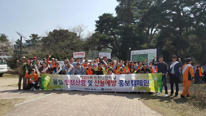 경주시(시장 최양식)는 제253차 안전점검의 날을 맞아 봄철 등산객들의 안전산행과 산불예방을 위한 캠페인을 4일 남산국립공원 입구 등산로에서 펼쳤다. 이날은 시 안전재난과와 산림경영과, 황남동 주민센터 직원을 비롯하여 경주소방서, 경주국립공원사무소, 재난안전네트워크, 안전모니터봉사단, 의용소방대 등 150여명이 참석한 가운데 캠페인을 실시했다. 이번 캠페인은 봄철 건조기에 산불의 발생위험이 증가될 것으로 예상됨에 따라 실시했으며, 산불예방 홍보와 행락철 등산객을 대상으로 등산사고 예방요령을 알리고 안전신문고 홍보물과 홍보물품을 배부하는 등 봄철 건조기 대비하여 산불과 안전에 대한 시민들의 의식제고에 힘썼다. 특히, 산림경영과는 주요 등산로에 산불조심 현수막을 걸고 산불 실화자에 대한 처벌 규정과 산림보호법에 의한 벌금 안내문을 등산객에게 전달했다. 최일부 산림경영과장은 “봄철에 기분좋은 산행에서 흡연 등 사소한 실수로 인해 돌이킬 수 없는 큰 재난으로 이어질 수 있다.”며, “가급적 산과 인접한 지역에 소각 등을 자제하고, 등산 시 화기 및 인화물질을 소지하지 마시고 산불방지를 위해 시민 모두가 협조해주기를 당부한다.”고 말했다. 김종환 안전재난과장은 “등산할 때 산에 대한 정보, 기상 등 충분히 숙지 후 하시기를 바라며, 건강에 대한 준비를 잘 하여 산행을 안전하게 즐기시기를 바란다.”고 전했다. 경주시는 매월 4일을 안전점검의 날로 지정하여, 안전사고 발생 가능성이 높은 재난취약시설에 대해 사전안전점검과 범시민 홍보계도 활동을 지속적으로 펼쳐 나갈 계획이다.