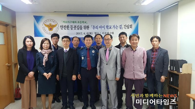 [미디어타임즈=문상수 기자] 인천서부경찰서 서곶지구대(대장 이정석)에서는지난 6일 서곶지구대 2층 회의실에서 관내 경서‧검암‧서곶‧심곡‧간재울‧공촌‧은지‧양지 초등학교 등 8개교 교감선생님들이 참석한 가운데 ‘우리 아이 학교 가는 길’ 간담회를 개최했다.‘우리 아이 학교 가는 길’은 공동체 치안을 위해 ‘경찰, 학교, 녹색어머니’와 함께 우리 아이의 안전한 등굣길의 환경을 위해 추진하는 시책이다.간담회에서는 최근 어린이 보호구역에서 교통사고 위험에 노출됨에 따라 경찰‧학교 합동으로 안전한 통학로 확보를 위해 불법 주정차 단속 방안과 ‘걸어서 등교하기’ 운동을 적극 추진하기로 했다.