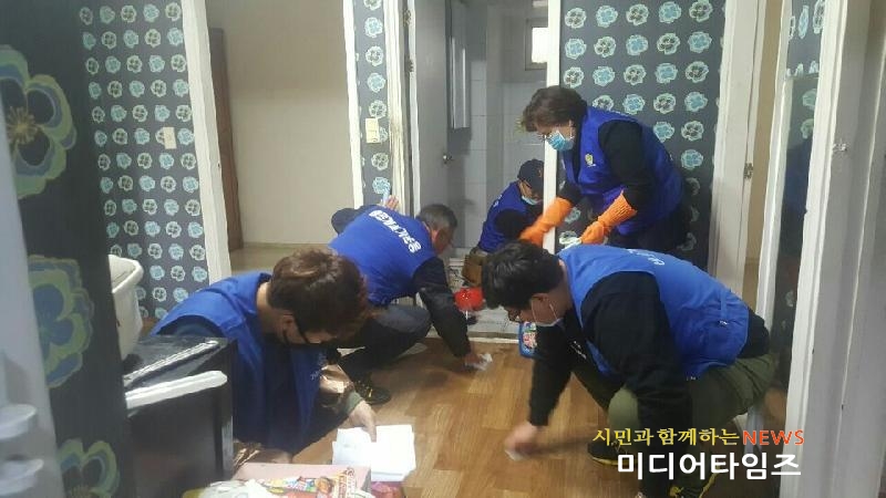 | 바르게살기운동 가좌3동위원회 독거노인 가정 청소 모습. <ⓒ미디어타임즈> |