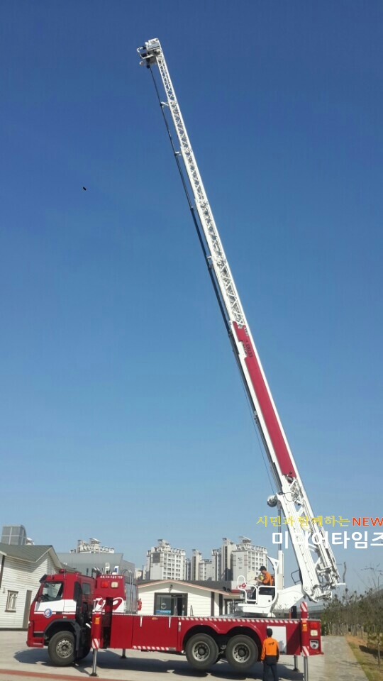 | 고층건물 화재대비 고가사다리차 조작훈련 모습. <ⓒ미디어타임즈> |