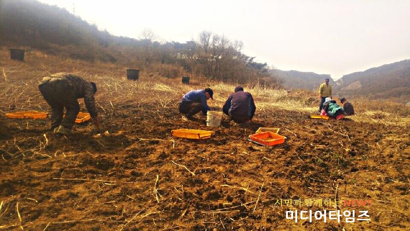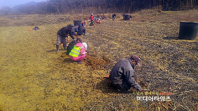 | 돼지감자 약1,400kg을 수확하는 모습. <ⓒ미디어타임즈> |