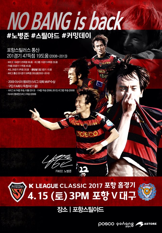 포항 스틸러스가 15일 토요일 오후 3시 포항스틸야드에서 펼쳐지는 2017 KEB 하나은행 K리그 클래식 홈경기를 ‘노병준 스틸야드 커밍데이’로 준비하였다. 2008년부터 2013년까지 포항 엠블럼을 달고 K리그 149경기 31득점 10도움, K리그 클래식 우승(2013), FA컵 3회 우승(2008, 2012, 2013), ACL 우승 및 대회 MVP(2009) 등 팬들에게 큰 인상을 심어준 노병준이 선수 은퇴 후 스틸야드로 돌아온다. 포항은 노병준을 환영하기 위해 다양한 이벤트를 준비하였다. 15일 경기 당일권은 ‘노병준 스틸야드 커밍데이’를 기념한 스페셜 디자인으로 발권된다. 북문광장에서는 오후 2시부터 30분간 노병준이 직접 팬들을 만나 사인회와 포토타임을 가진다. 장내에서는 경기 시작 20분 전부터 기념 액자 전달, 기념 영상 상영이 이어진 후 노병준이 직접 마이크를 잡고 포항 팬들에게 마지막 인사를 건넬 예정이다. 지역사회와 함께하는 포항 스틸러스의 노력은 15일 홈경기에서도 계속해서 이어진다. 주장 황지수는 포항 선린복지관 어린이 30여명을 초청해 함께 경기를 관전한다. 2017 시즌 개막전에서 코뼈골절 부상을 당해 회복 중인 황지수는 그라운드 대신 관중석에서 어린이들과 함께 동료 선수들을 응원하며 좋은 추억을 만들어 주려고 한다. 어린이들의 이동차량과 간식 등 모든 비용은 황지수가 후원한다. 포항 스틸러스가 후원하는 포항지역아동센터 어린이 50여명, 포스코 제강부에서 후원하는 송도 지역아동센터 어린이 20여명, 그리고 그린나래봉사회(ROTC 포항지회)에서 후원하는 경주 온정마을 장애인 30여명도 스틸야드에서 포항의 승리를 함께 응원할 계획이다. 아울러 퍼스트클래스 연간회원의 선수격려 행사도 실시된다. 하프타임에는 포항 영일고 댄스팀 ‘에이블’의 공연을 통해 관중들에게 볼거리도 제공할 예정이다. 한편, 현재 3위로 순항중인 포항은 4년만에 만나는 대구를 상대로 3연승을 노린다. 마지막으로 대구를 상대했던 경기는 2013년 8월 3일 대구 원정으로 당시 노병준의 득점에 힘입어 1:0으로 승리하였다. 포항스틸러스 홈경기 티켓은 경기 당일 포항스틸야드 북문과 남문에 위치한 매표소 또는 경기 전 티켓링크(http://www.ticketlink.co.kr/sports/football/74#reservation)를 통해 예매할 수 있다.