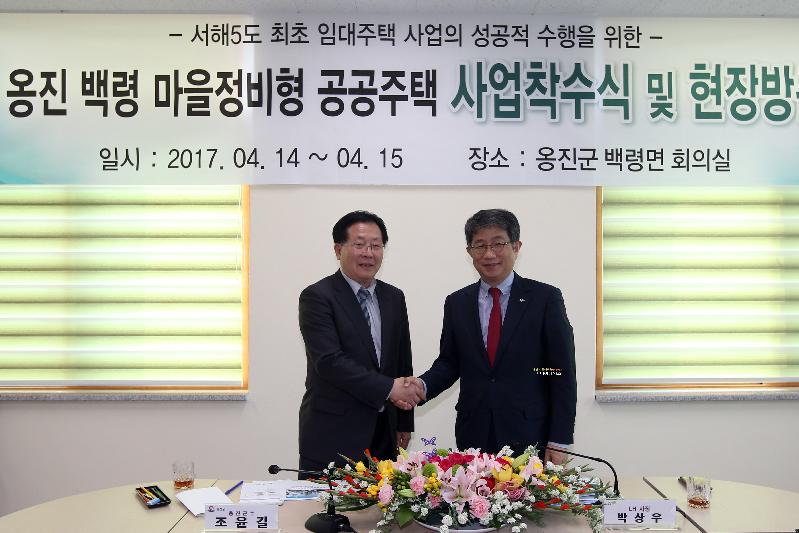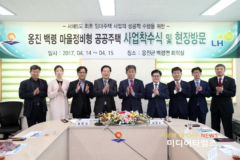 [미디어타임즈=문상수 기자] 지난 14일 박상우 LH 사장이 옹진군 백령도를 방문하여 조윤길 옹진군수와 국토교통부 공공주택공급과장, LH 인천지역본부장 등 관계자들과 함께 2015년에 선정되어 추진 중인『마을정비형 공공주택사업-백령면 LH 임대아파트』착수식을 갖고 2018년 3월 준공을 목표로 사업추진에 가속도를 붙이게 됐다.이번 착수식에서 조윤길 옹진군수는 서해최북단 백령도와, 최접경지역 연평도에 2년연속『마을정비형 공공주택사업』사업대상지로 선정하고, 지난 3월 백령도를『공공실버주택사업』대상지로 선정해준 데 대해 국토교통부와 LH에 깊은 감사의 마음을 전했으며,내년 3월 준공인 백령도에 이어 연평도 임대아파트도 조속히 완공될 수 있도록 최대한 노력해 줄 것을 부탁하고 이를 위해 옹진군에서도 최대한의 협력을 다하겠다고 약속했다.금년에는 대청도를『2018년도 마을정비형 공공주택사업』부지로 신청하여 서해5도 전지역에 LH임대아파트 건설을 추진할 계획이라고 밝히며 반드시 선정될 수 있도록 국토교통부와 LH의 적극적인 도움을 요청했다.이에, 박상우 LH사장은 “4시간이 넘게 배를 타고 백령도에 직접 와서 보니 서해5도서에 LH 임대아파트를 건설하게 된 것을 매우 뜻 깊게 생각하며, 열악한 주거환경에서 묵묵히 거주하고 계시는 주민들을 위해 조속히 완공하여 깨끗하고 안락한 보금자리를 제공하는 데 최선을 다하겠다”고 밝혔다.함께 참석한 국토교통부 윤영중 공공주택공급과장도 “「보편적 주거복지를 통한 서민 주거안정 실현」이라는 국토교통부 정책목표에 걸맞게 이번 사업을 통해 어려운 환경에서 거주하시는 서해5도 지역주민들의 주거복지 향상에 보탬이 되도록 계속해서 관심을 갖고 지원하도록 노력하겠다”고 덧붙였다.한편, 박상우 LH사장과 국토교통부, LH 관계자들은 사업착수식과 함께 토지보상 관련 사무실과 임대아파트가 건설될 현장을 돌아보는 등 본격적인 사업추진에 앞서 최종 점검을 하는 한편, 천안함 위령탑을 찾아 헌화하고, 다음날인 4월 15일에는 대청도로 건너가 대청도 지역을 돌아보는 것으로 이번 일정을 마쳤다.백령도 임대아파트는 80호 규모로 내년 3월말 준공, 연평도는 50호로 내년 상반기 착공, 그리고 지난 3월에 유치 성공한 공공실버주택은 70호와 실버복지관 복합동으로 건축하는 사업으로서 내년 6월 준공을 목표로 추진되고 있으며, 서해5도 지역의 주거 복지향상은 물론, 지역 활성화 등 상당한 사업효과가 있을 것으로 전망된다.