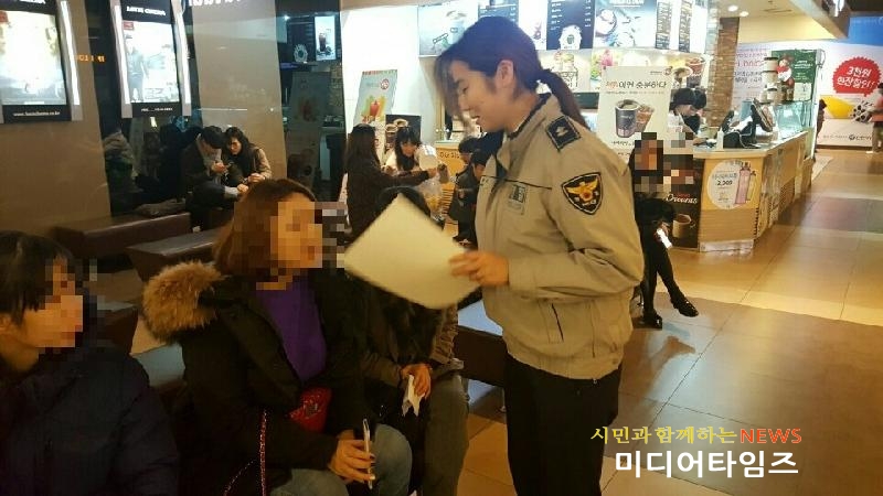 [미디어타임즈=문상수 기자] 인천남부경찰서(서장 조종림)가 교통 반칙행위 특별단속 70일차에 접어든 현재, 시민의 인식 확인과 재 홍보 차원에서 지난 16일(일) 주안역, 주안CGV 등 다중이용시설을 방문해 리플릿 배부 등 홍보활동을 펼쳤다. 남부서는, 지난 2월 7일자에 대대적으로 실시되었던‘교통 반칙행위 특별단속 추진 계획’이 70일이 지난 현 상황에서, 반칙 행위에 대한 시민들의 변화된 인식을 확인하고, 재 홍보를 하기 위한 취지로 이번 현장홍보를 계획했다.홍보활동은, 주말을 이용해 유동인구가 많은 주안역 및 CGV, 신세계 백화점, 터미널 등 다중이용시설을 이용하는 시민들과 운전자들을 대상으로 설문식 대화를 실시하며, 설문 후에는 교통반칙 종류에 대한 홍보 리플릿을 배부했다.이날, 설문에 응한 택시운전기사 K씨는 “언론이나, SNS에서도 경찰의 3대 반칙 근절 홍보를 많이 보게 되어 내용을 어느 정도는 알고 있고 잘 지켜 나가고 있다”고 말했다.한편, 조종림 서장은 “3대 반칙으로 인한 피해자가 발생하지 않도록 중점 단속과 반칙 행위에 대해 알리는 활동을 지속적으로 펼쳐 나갈 것”이라고 말했다