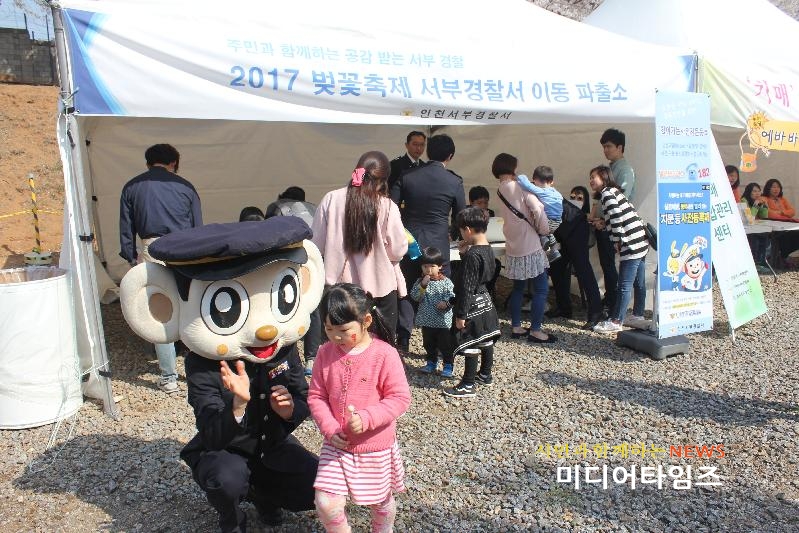 [미디어타임즈=문상수 기자] 인천서부경찰서(서장 조은수)는지난 14일 원창동에 위치한 SK 정유석유화학 벚꽃축제 기간을 맞이하여 주민과 함께 공감하는 치안활동을 전개하기 위하여 경찰관들이 현장에 진출하여 성·가정폭력 예방 및 미아방지를 위한 찾아가는 지문등록을 진행했다.이 날 행사는 화사한 봄날을 맞아 활짝 핀 벚꽃을 구경하러 온 수많은 상춘객을 상대로 진행하였으며, 축제 참가대상이 자녀를 동반한 가족 단위임을 고려해,‘찾아가는 지문등록제’를 운영하여 시민들의 편의를 도모하였다. ‘사전지문등록제’란, 아동 등이 실종되었을 때를 대비해 미리 경찰에 지문과 얼굴 사진, 기타 신상 정보를 등록하고 실종 시 등록된 자료를 활용해 보다 신속히 발견하는 제도이다. 축제 전부터, 서구청 협조 문자알림서비스 및 맘카페 공지로 널리 홍보하였고, 가족관계증명서 및 안전드림앱 등을 활용하여 필요 구비서류 및 준비를 할 수 있도록 하여 시민들의 헛걸음을 방지하였다.또 한, 이날 캠페인에는 포돌이·포순이 등 경찰의 친근한 캐릭터를 활용하여 어린이 함께 사진을 촬영하는 등 행사장을 찾은 시민들에게 많은 즐거음을 행사하였다. 아이와 함께 행사장을 찾은 김모씨(청라지구)는 “이렇게 좋은 행사를 진행하여 지역을 안전을 위하여 애쓰는 모습에 진심으로 감사드린다.”고 하였다. 조은수 경찰서장은“앞으로도 지역 주민들에게 먼저 찾아가 모두가 공감하는 아동·여성의 안전을 위한 치안활동을 전개하기 위하여 더욱 노력하겠다.”라고 말했다.