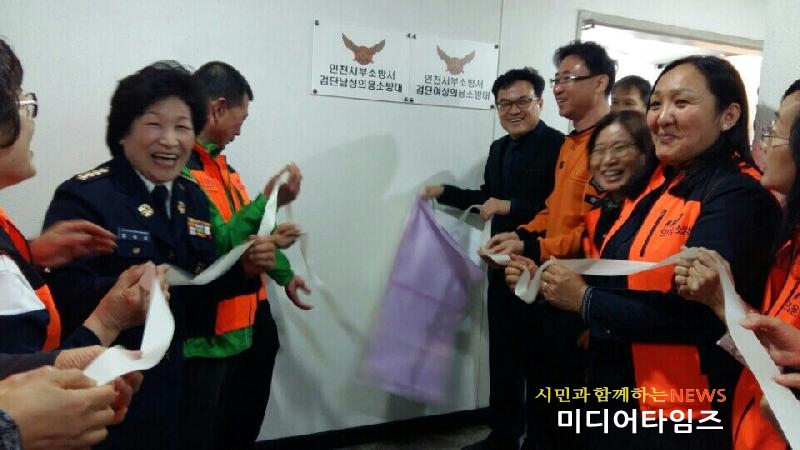 [미디어타임즈=문상수 기자] 인천서부소방서(김준태 서장)는 지난 14일(금) 오전 11시 검단119안전센터에서 인천서부소방서장, 검단119안전센터장, 검단119의용소방대장 등 50여명이 참석한 가운데 검단의용소방대 사무실 이전 현판식을 가졌다.검단의용소방대는 서명원 검단의용소방대장을 주축으로 대원 49명으로 구성되어 있으며 화재‧구조‧구급 현장, 특별경계근무 유동순찰, 여름철 수상안전 등 헌신적인 활동에 임하고 독거노인 및 노인요양시설을 찾아 목욕봉사를 정기적으로 시행하여 주민들로부터 화제가 되었으며 소외된 계층에게 많은 격려와 지원을 하여 지역사회 발전에 노력하고 있다.이날 현판식 후 검단 일대에서 화재예방 및 소방차 길터주기 캠페인을 추가로 실시하였다.서명원 대장은 “검단의용소방대 사무실 이전 현판식에 축하하여 주셔서 감사하다.”며 “우리 검단의용소방대는 앞으로도 주민 안전지킴이 역할에 최선을 다하겠다.”고 밝혔다. 또한 김준태 서장은 “각종 사고가 발생하여 안전불감증이 화두가 되는 만큼 검단의용소방대가 지역 안전을 위해 홍보와 예방활동에 힘써 달라”고 말했다.