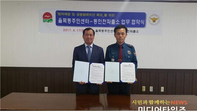| 율목동주민센터 동인천파출소 업무협약식 사진. <ⓒ미디어타임즈> |
