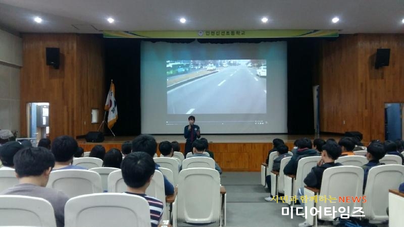 [미디어타임즈=문상수 기자] 인천중부경찰서(서장 안영수)는 지난 10일 신선초등학교 6학년을 대상으로 어린이 교통사고 예방을 위한 교통안전교육을 실시했다.이번 어린이 교통안전교육은 교통사고 영상을 바탕으로 한 시청각 자료를 통해 교통사고의 원인, 횡단보도를 건너기 등 일상생활에서 반드시 지켜야 할 교통안전수칙과 학생들이 실제로 겪은 교통사고 사례를 바탕으로 교육을 진행했다이번 교통안전 교육으로 신선초 학생들이 교통안전의 중요성을 다시 한 번 깨닫고 스스로 교통안전규칙을 잘 지키며 안전하게 등·하교를 실천하는 계기가 될 것이다.